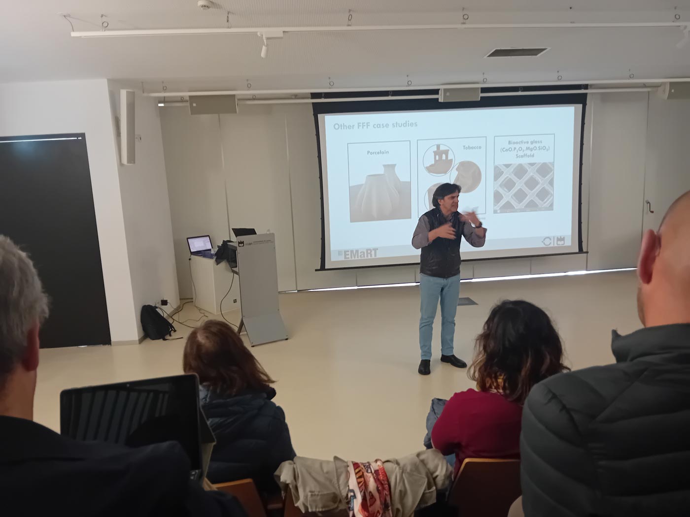 A manufatura aditiva e os seus principais casos de uso estiveram em destaque na intervenção de Martinho Oliveira, seguindo-se a apresentação de projetos integradores, com exemplos práticos de implementação tecnológica em contexto empresarial, apresentados por Miguel Cruz, Nelson Ferreira e Augusto Coelho, bolseiro de investigação da ESAN-UA, coordenador do projeto Augmanity – Bosch Termotecnologia, S.A., e docente da ESAN-UA, respetivamente.